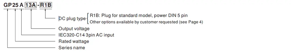 Mean Well Industrial Desktop Adaptor GP25A Series Model Encoding