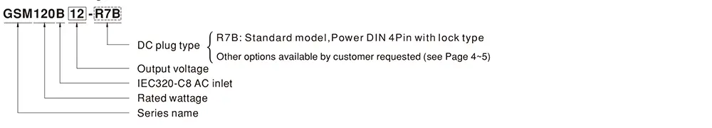 Mean Well Medical Desktop Adaptor GSM120B Series Model Encoding
