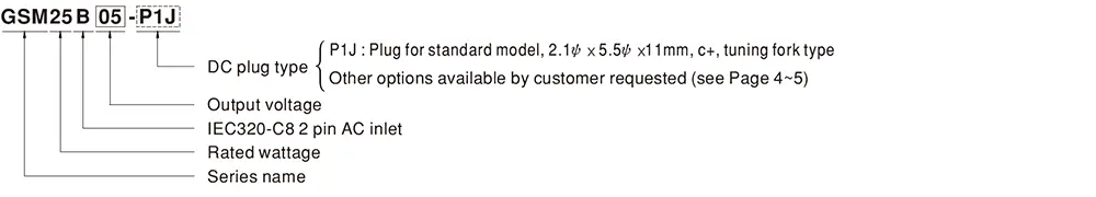 Mean Well Medical Desktop Adaptor GSM25B Series Model Encoding