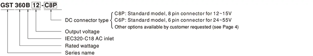 Mean Well Industrial Desktop Adaptor GST360B Series Model Encoding