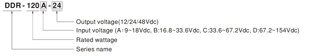 Mean Well DC-DC Converter DDR-120 Series Model Encoding