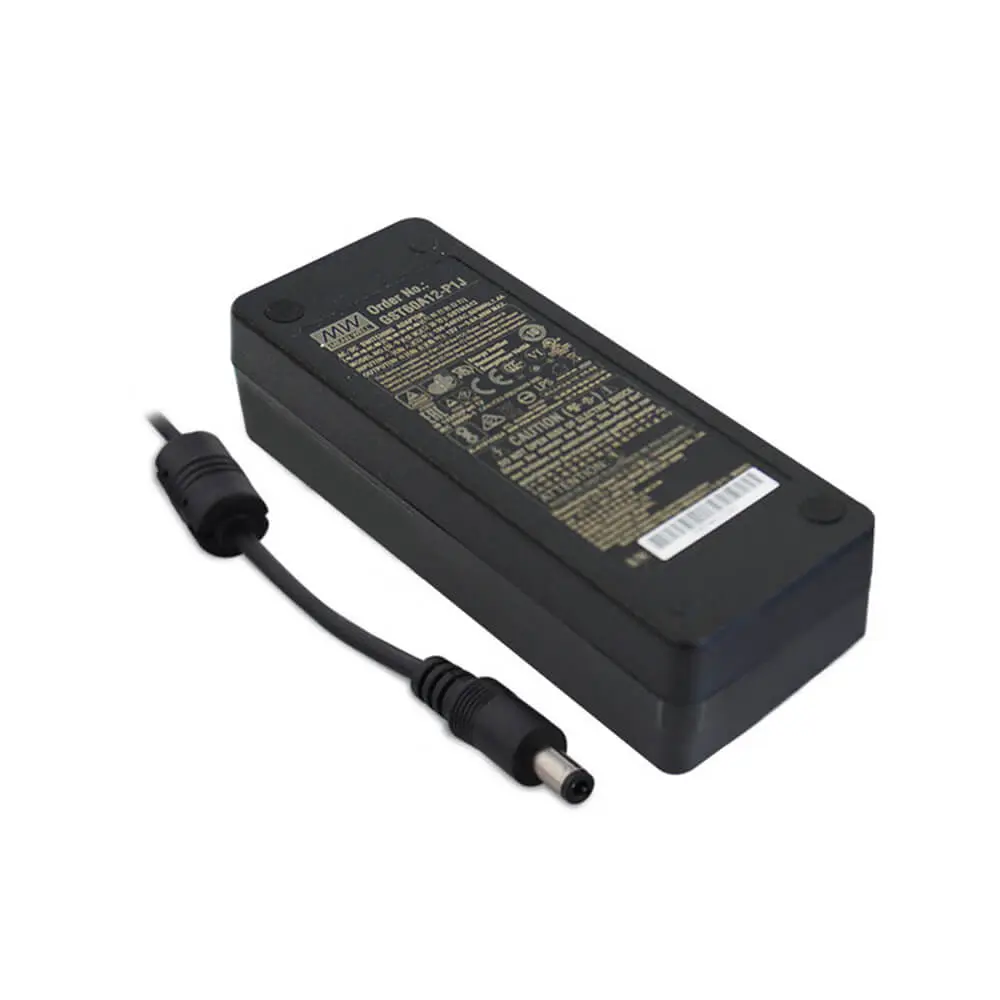 The Mean Well GST60A series is a line of AC-DC industrial desktop power adaptors designed for various applications, providing reliable power with a focus on efficiency and safety. The GST60A series delivers a maximum output power of 60W, making it suitable for a range of devices. The series includes various models with different output voltages, such as 12V and 24V, offering output currents of up to 5A depending on the specific model (e.g., GST60A12-P1J provides 12V at 5A, and GST60A24-P1J provides 24V at 2.5A). The GST60A series complies with energy efficiency regulations, including DoE Level VI and CoC Version 5, ensuring minimal energy waste and reduced operating costs. These power adapters come with multiple safety certifications, including TUV (EU), UL (North America), CCC (China), and others, which ensure compliance with global safety standards. The adapters are designed to operate in a wide temperature range of -30°C to +70°C, making them suitable for various environments. The Mean Well GST60A series offers a robust and efficient solution for powering a variety of devices in industrial and commercial settings, backed by comprehensive safety certifications and energy efficiency compliance.