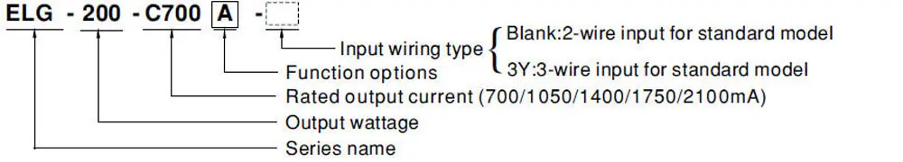 Mean Well LED Driver ELG-200-C series Model Encoding
