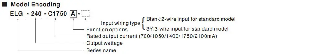 Mean Well LED Driver ELG-240-C series Model Encoding