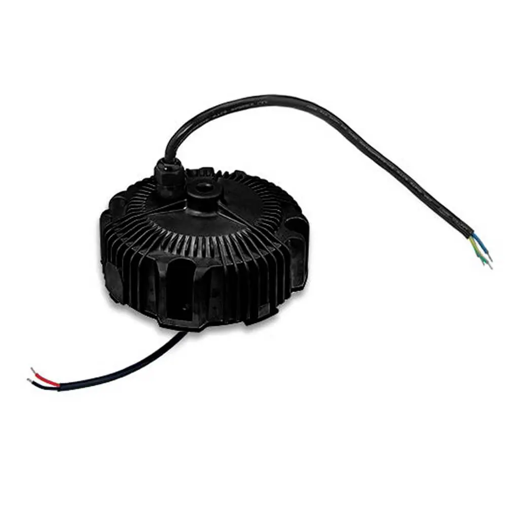 HBG-160 series is a 160W AC/DC LED driver featuring the circular shape design. It operates from 90~305VAC and offers the dual modes constant voltage and constant current output models with different rated voltage between 24Vand 60V. Thanks to the high efficiency up to 93.5%, with the fanless design, the entire series is able to operate for -40℃ ~ +85℃ case temperature under free air convection. The design of metal housing and IP67/IP65 ingress protection level allows this series to fit both indoor and outdoor applications. HBG-160 is equipped with various function options, such as dimming methodologies, so as to provide the optimal design flexibility for LED lighting system.