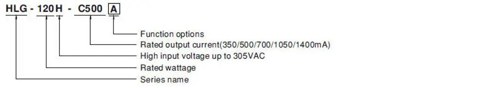 Mean Well LED Driver HLG-120H-C Series Model Encoding