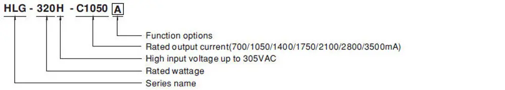 Mean Well LED Driver HLG-320H-C Series Model Encoding