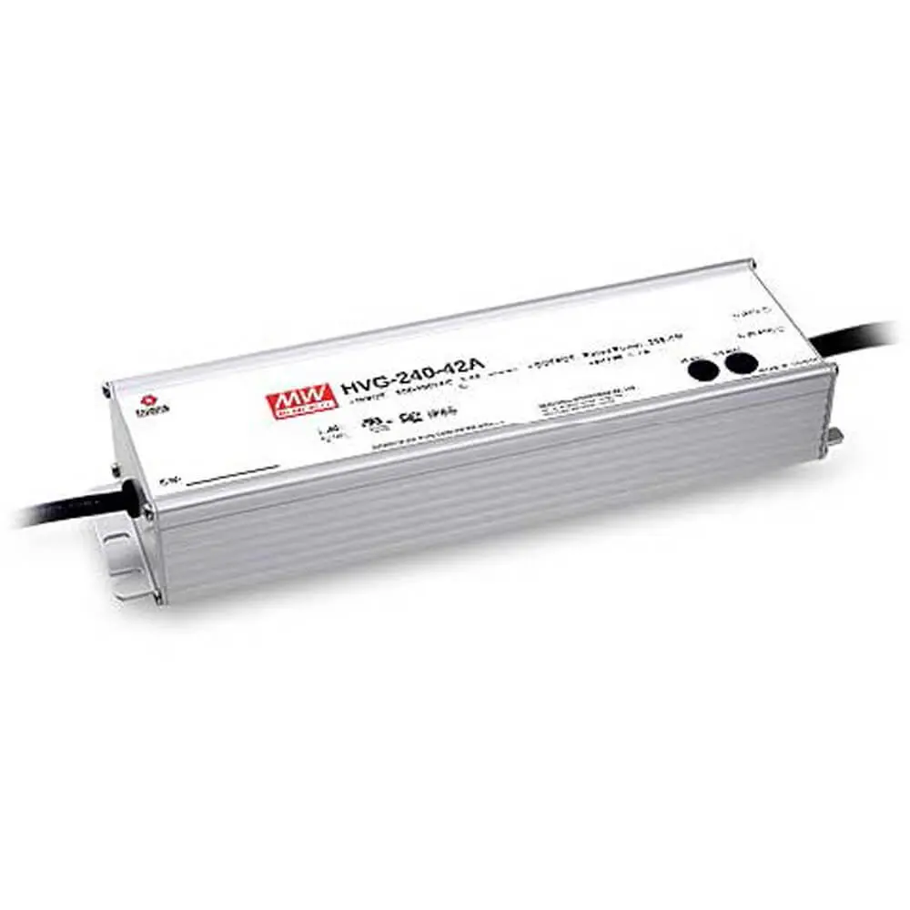HVG-240 series is a 240W AC/DC LED power supply featuring the dual mode constant voltage and constant current output. HVG-240 operates from 180~528VAC and offers models with different rated voltage ranging between 24V and 54V. Thanks to the high efficiency up to 93%, with the fanless design, the entire series is able to operate for -40℃ ~ +90℃ case temperature under free air convection. The design of metal housing and IP67/IP65 ingress protection level allows this series to fit both indoor and outdoor applications. HVG-240 is equipped with various function options, such as dimming methodologies, so as to provide the optimal design flexibility for LED lighting system.