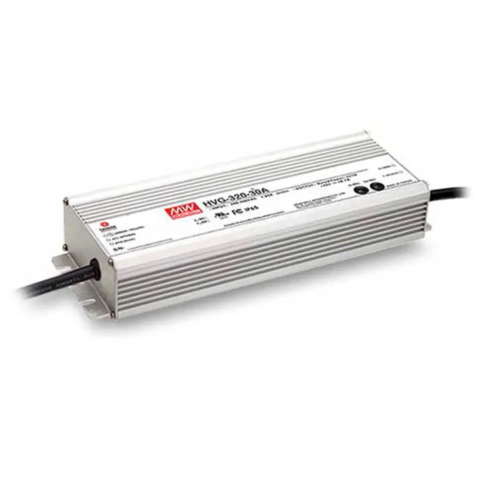 HVG-320 series is a 320W AC/DC LED power supply featuring the dual mode constant voltage and constant current output. HVG-320 operates from 180~528VAC and offers models with different rated voltage ranging between 24V and 54V. Thanks to the high efficiency up to 94%, with the fanless design, the entire series is able to operate for -40℃ ~ +85℃ case temperature under free air convection. The design of metal housing and IP67/IP65 ingress protection level allows this series to fit both indoor and outdoor applications. HVG-320 is equipped with various function options, such as dimming methodologies, so as to provide the optimal design flexibility for LED lighting system.