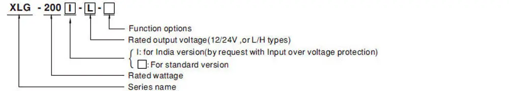 Mean Well LED Driver XLG-200 Series Model Encoding